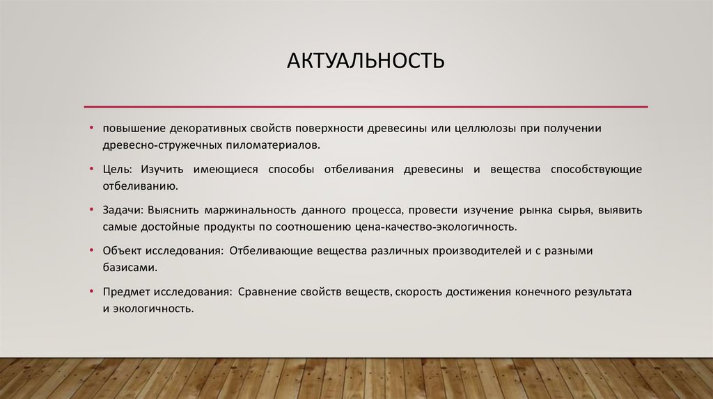 АКТУАЛЬНОСТЬ• повышение декоративных свойств поверхности древесины или целлюлозы при получении