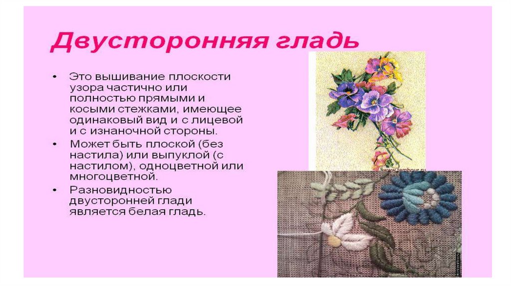 Выполнение вышивки двусторонней гладью