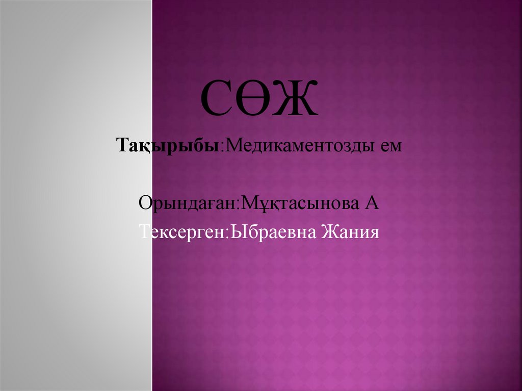СӨЖТақырыбы:Медикаментозды ем