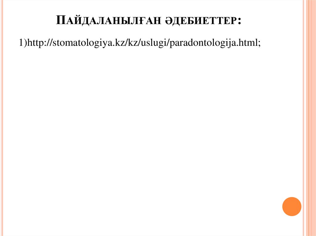 ПАЙДАЛАНЫЛҒАН ӘДЕБИЕТТЕР:1)http://stomatologiya.kz/kz/uslugi/paradontologija.html;