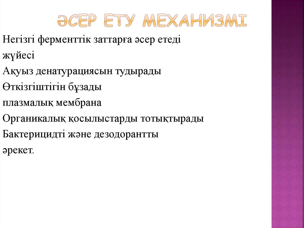 - Бактерицидтік әсерге байланыстыболып табылатын Атом оттегін