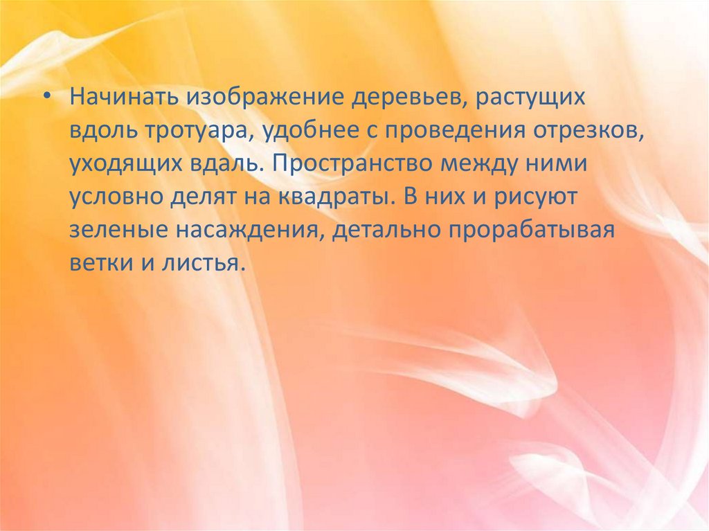 • Начинать изображение деревьев, растущихвдоль тротуара, удобнее с проведения отрезков,