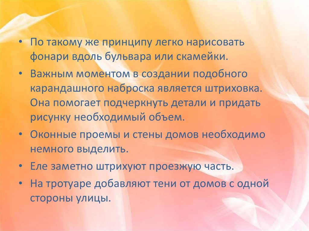 • По такому же принципу легко нарисоватьфонари вдоль бульвара или скамейки.