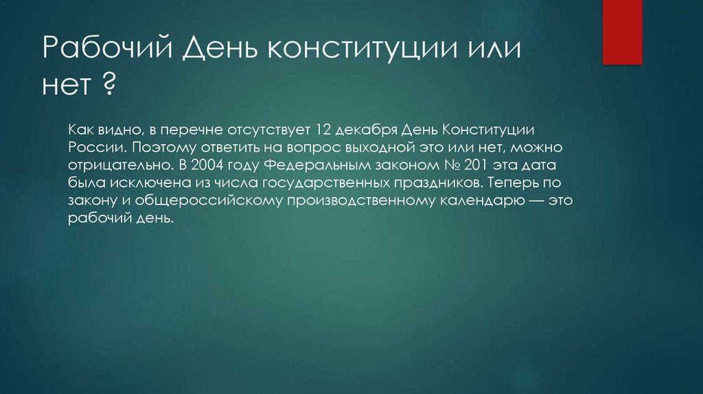 Рабочий День конституции илинет ?