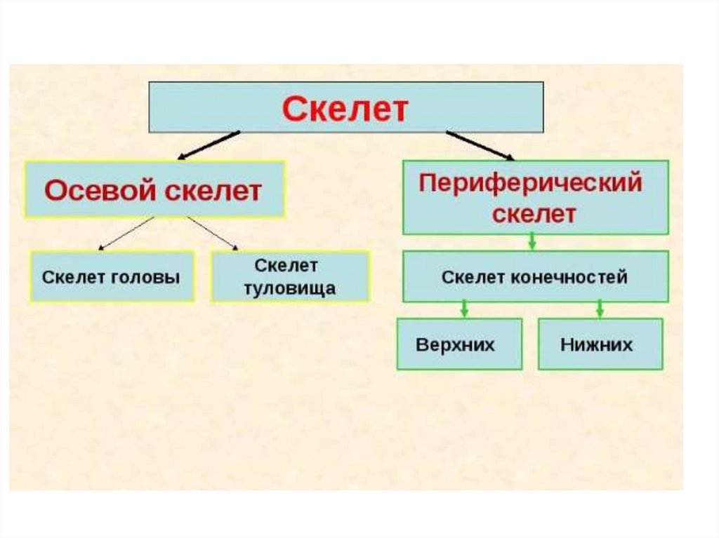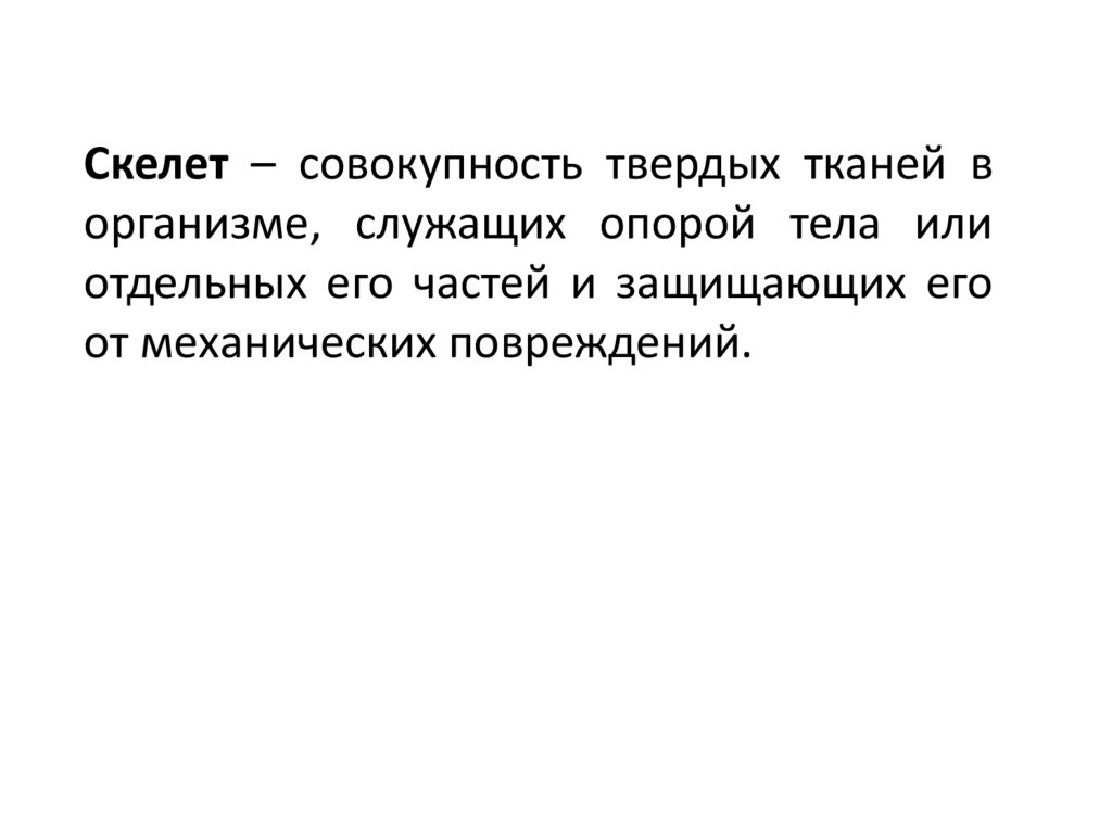 Скелет – совокупность твердых тканей ворганизме, служащих опорой тела или