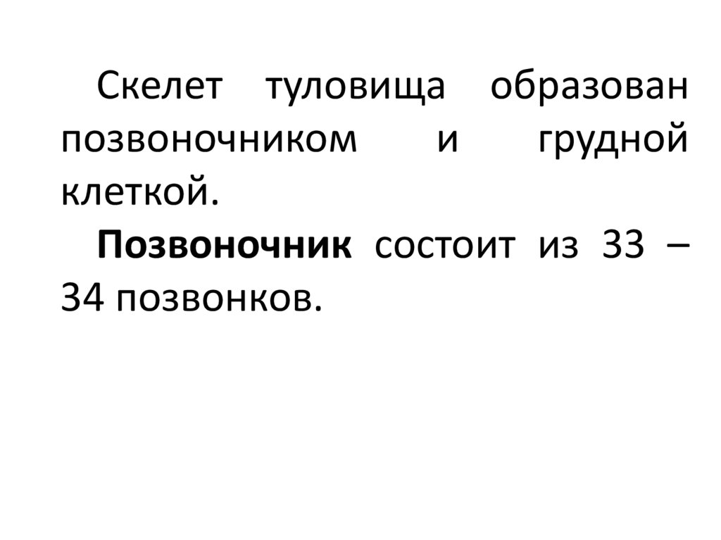 Скелет туловища образованпозвоночником