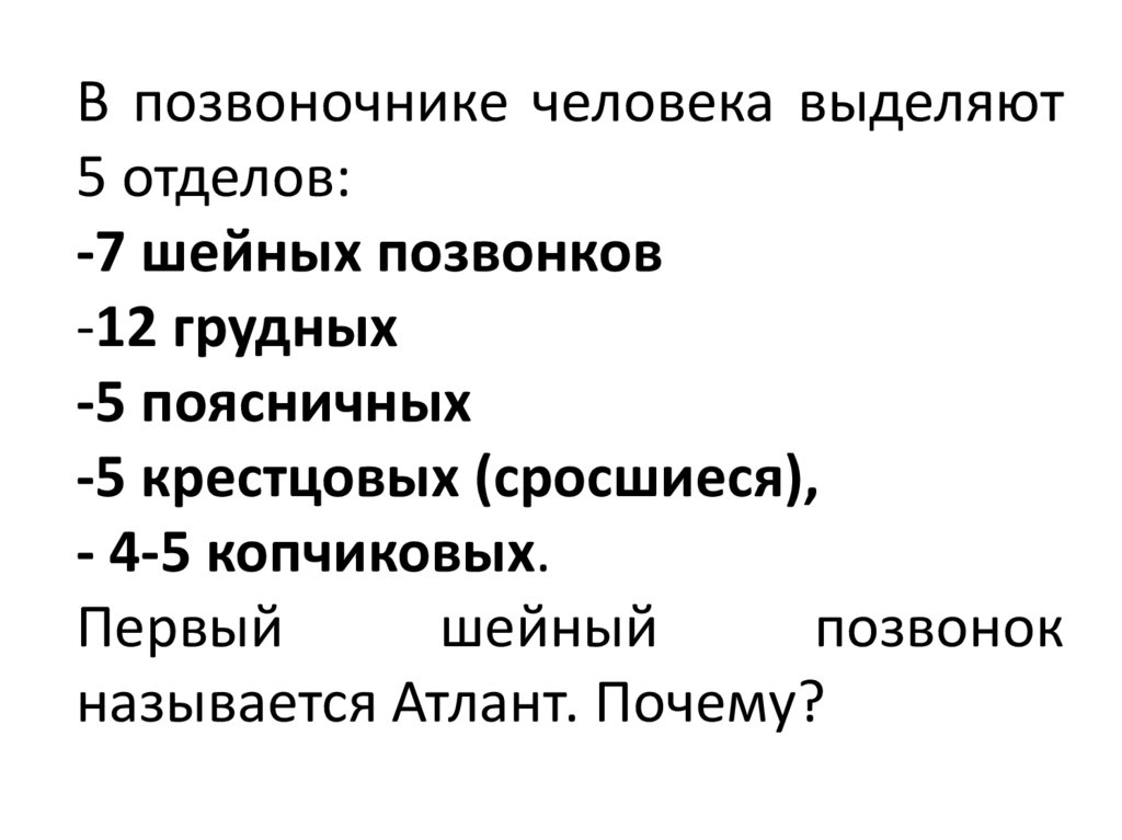 В позвоночнике человека выделяют5 отделов: