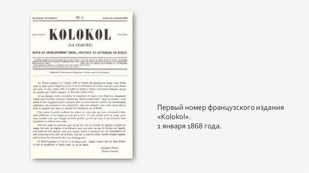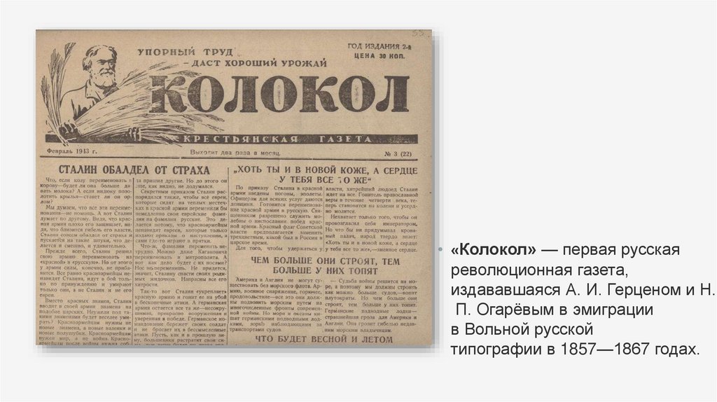 • «Колокол» — первая русскаяреволюционная газета,