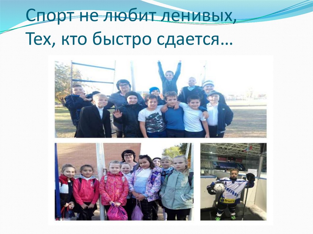 Спорт не любит ленивых,Тех, кто быстро сдается…