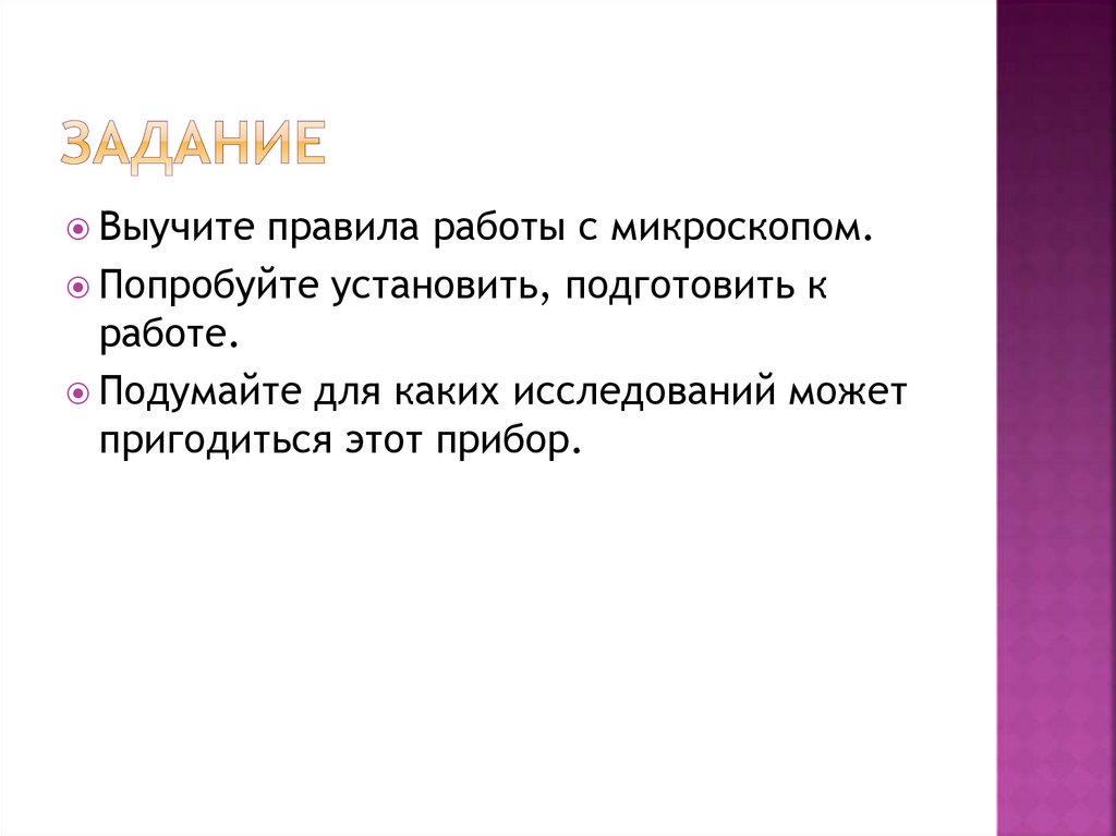правила работы с микроскопом.