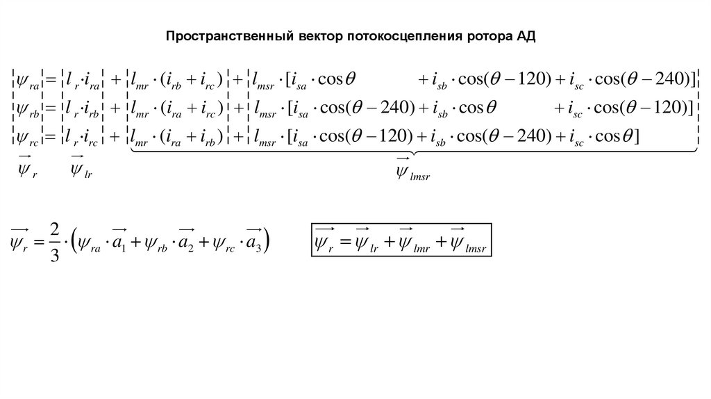 Пространственный вектор потокосцепления ротора АДra l r ira lmr (irb irc ) lmsr [isa cos