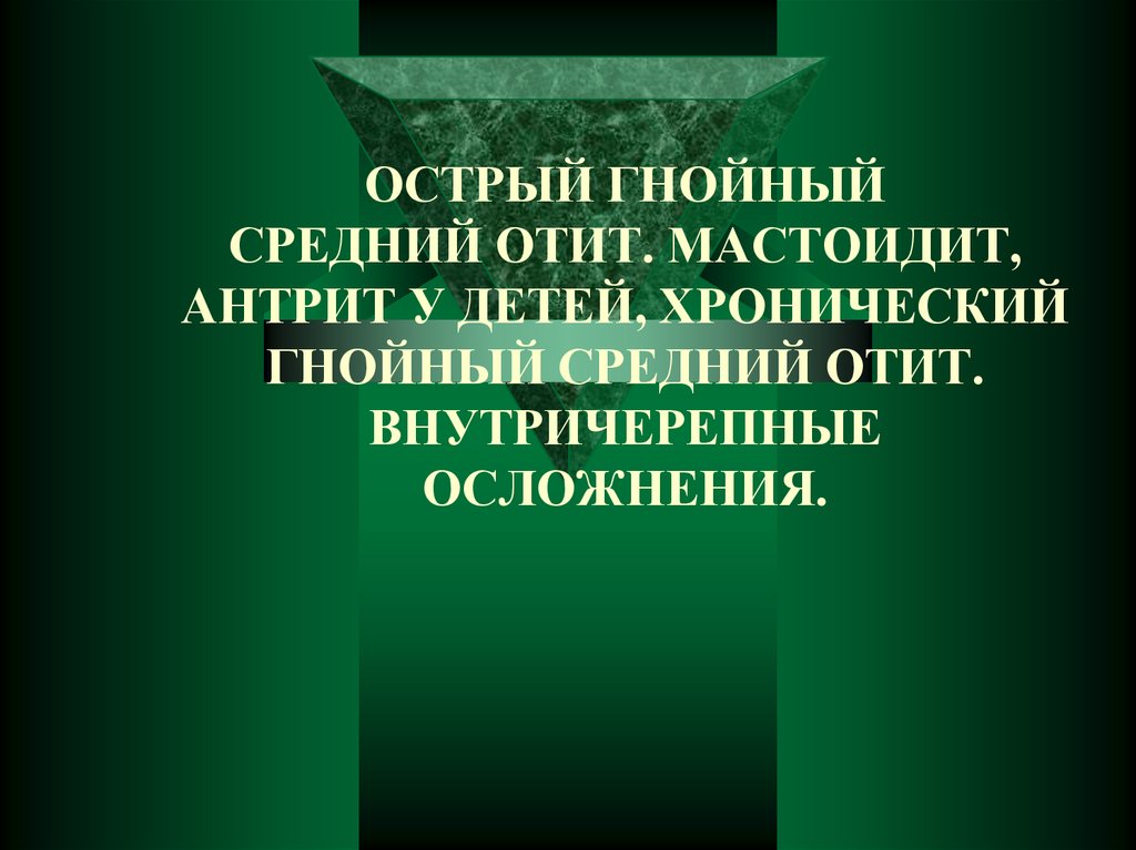 1. ОСТРЫЙ ГНОЙНЫЙ СРЕДНИЙ ОТИТ. МАСТОИДИТ, АНТРИТ У ДЕТЕЙ, ХРОНИЧЕСКИЙ ГНОЙНЫЙ СРЕДНИЙ ОТИТ. ВНУТРИЧЕРЕПНЫЕ ОСЛОЖНЕНИЯ.