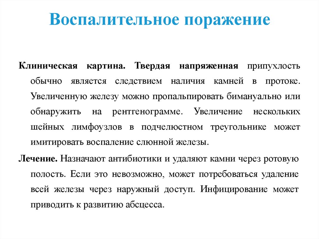 Воспалительное поражениеКлиническая картина. Твердая напряженная припухлость