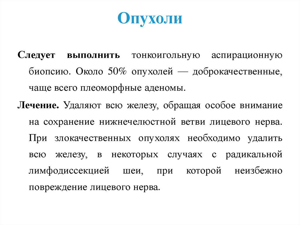 биопсию. Около 50% опухолей — доброкачественные,