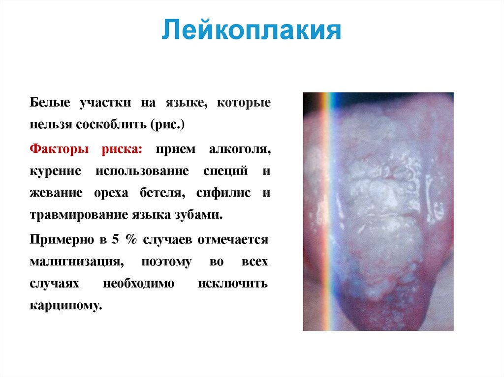 ЛейкоплакияБелые участки на языке, которые
