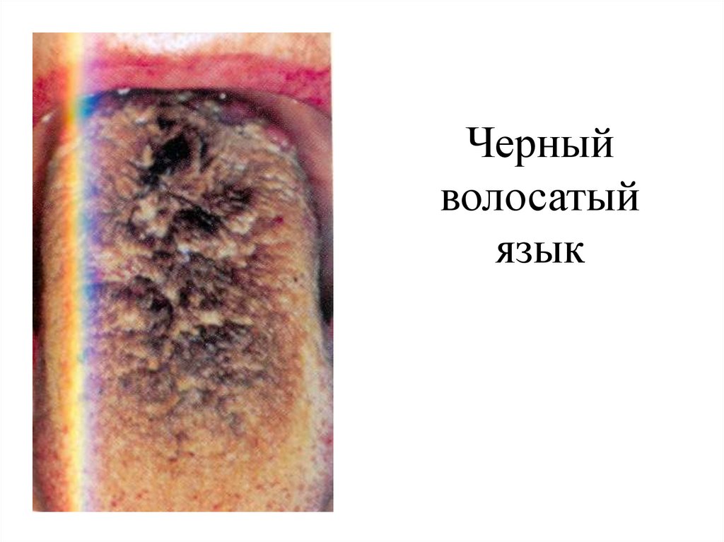 Черный волосатый язык• Вызывается чрезмерно быстрым ростом и удлинением