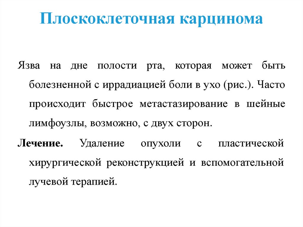 Плоскоклеточная карциномаЯзва на дне полости рта, которая может быть