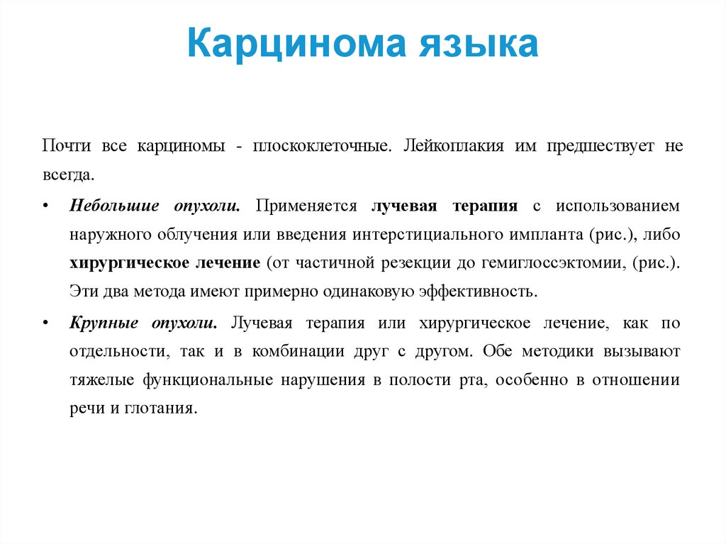 Карцинома языкаПочти все карциномы - плоскоклеточные. Лейкоплакия им предшествует не