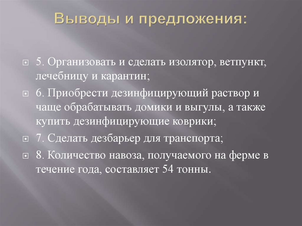 5. Организовать и сделать изолятор, ветпункт,лечебницу и карантин;