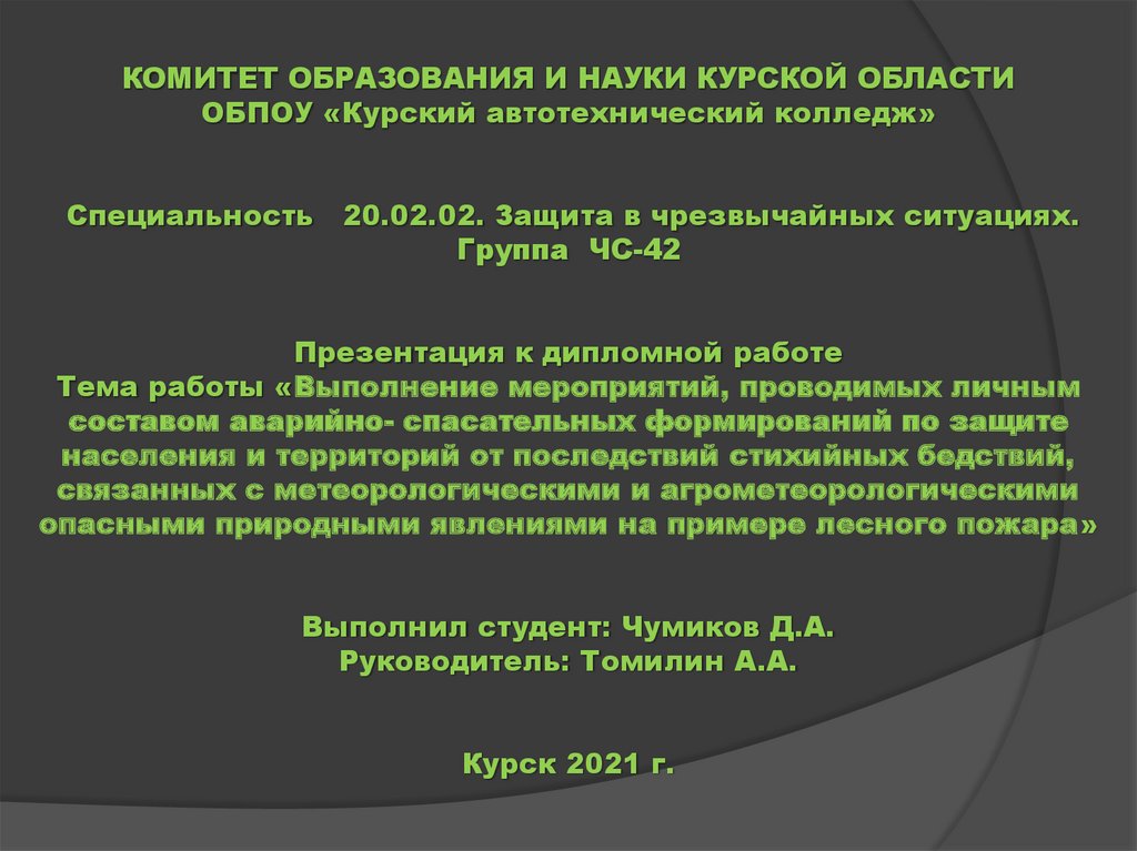 КОМИТЕТ ОБРАЗОВАНИЯ И НАУКИ КУРСКОЙ ОБЛАСТИОБПОУ «Курский автотехнический колледж»