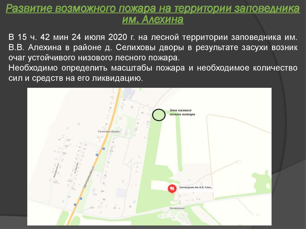 Развитие возможного пожара на территории заповедникаим. Алехина