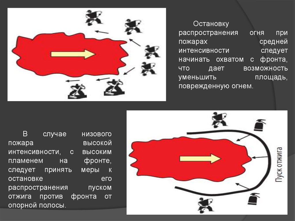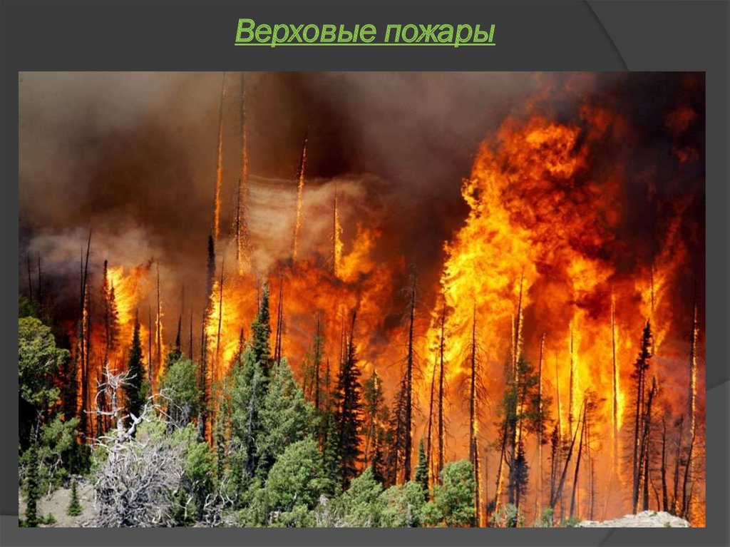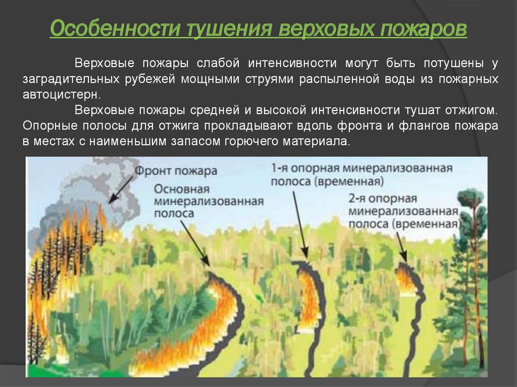 Особенности тушения верховых пожаровВерховые пожары слабой интенсивности могут быть потушены у