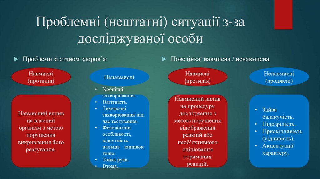Проблемні (нештатні) ситуації з-задосліджуваної особи