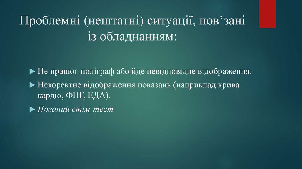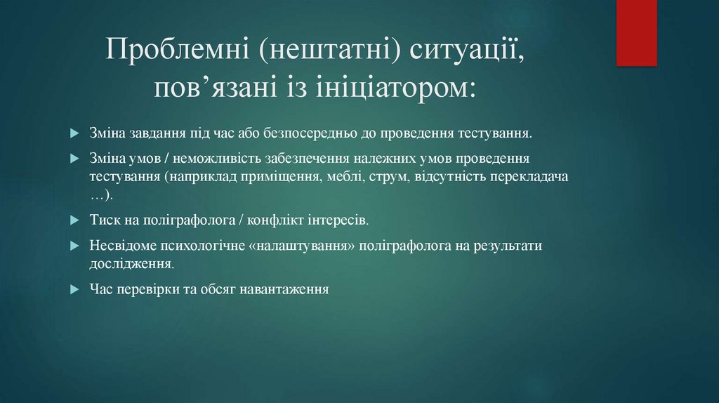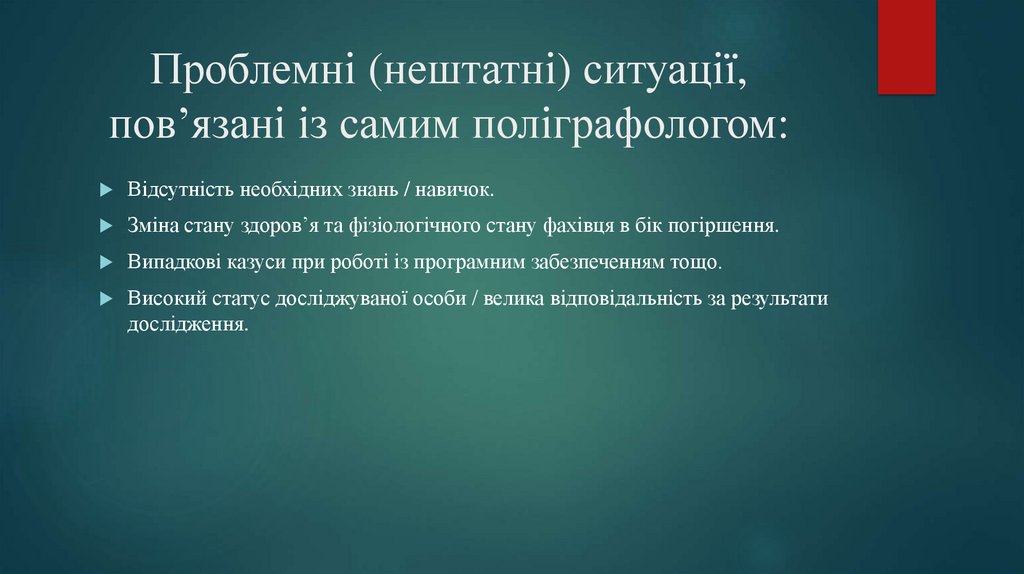 Проблемні (нештатні) ситуації,пов’язані із самим поліграфологом: