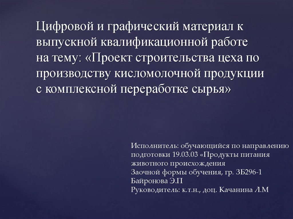 ВКР: Проект строительства цеха по производству кисломолочной продукции с комплексной переработке сырья