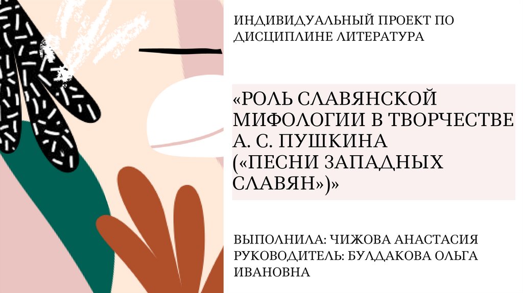 ИНДИВИДУАЛЬНЫЙ ПРОЕКТ ПОДИСЦИПЛИНЕ ЛИТЕРАТУРА