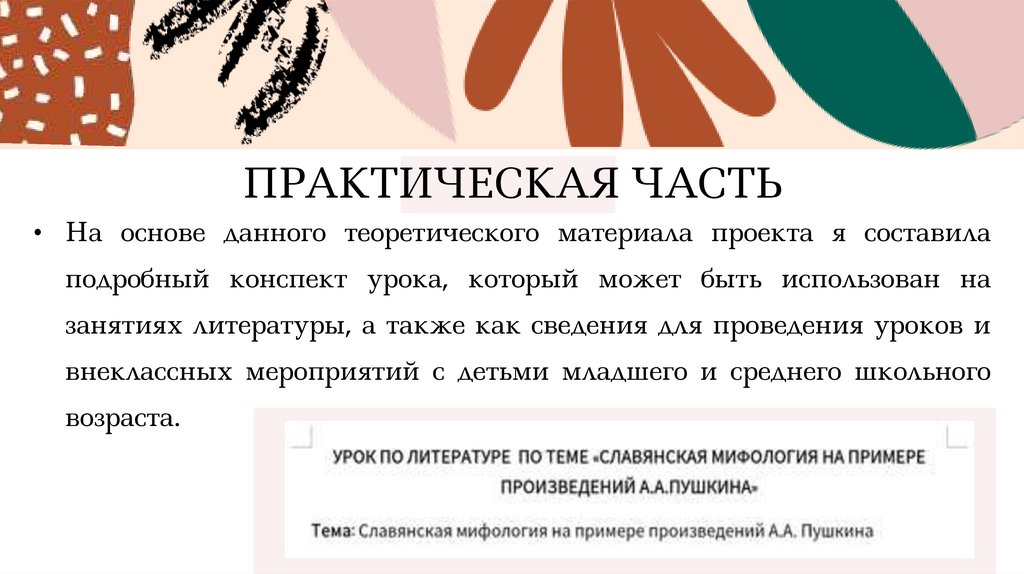ПРАКТИЧЕСКАЯ ЧАСТЬ• На основе данного теоретического материала проекта я составила
