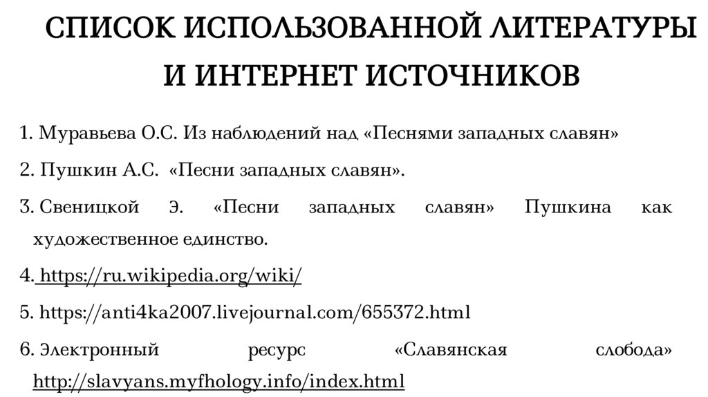 1. Муравьева О.С. Из наблюдений над «Песнями западных славян»