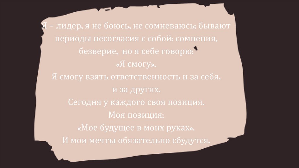 Я – лидер, я не боюсь, не сомневаюсь; бываютпериоды несогласия с собой: сомнения,