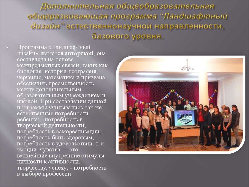 Программа «Ландшафтныйдизайн» является авторской, она