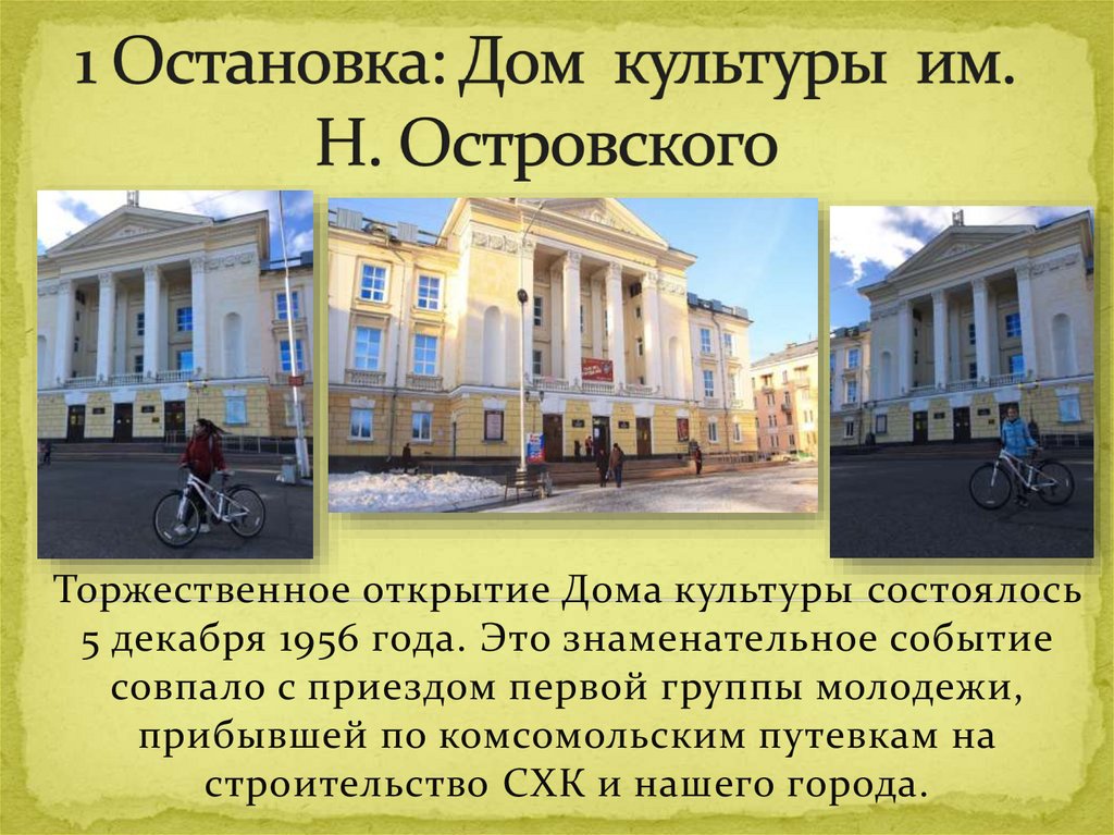 Торжественное открытие Дома культуры состоялось5 декабря 1956 года. Это знаменательное событие
