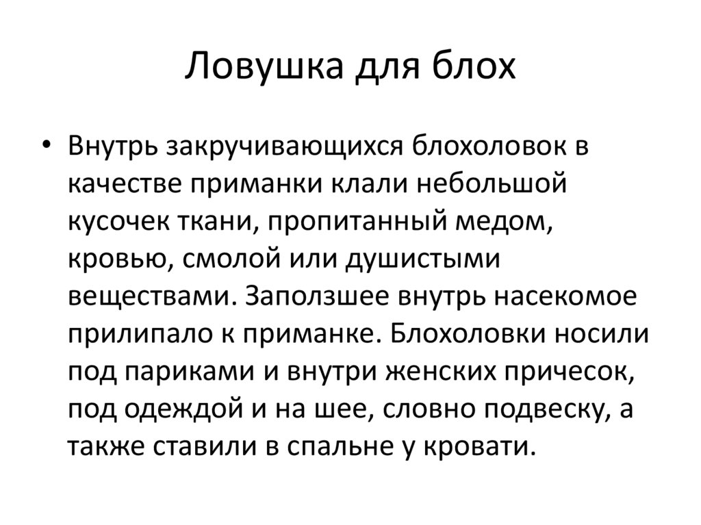 Ловушка для блох• Внутрь закручивающихся блохоловок в