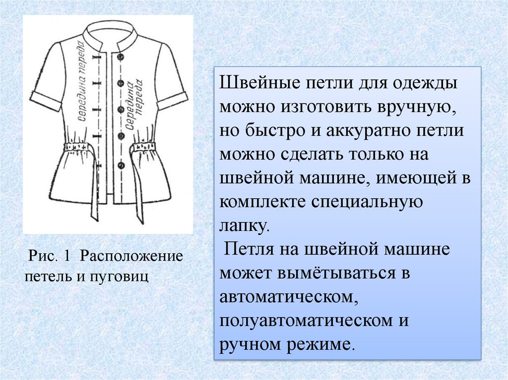 Рис. 1 Расположениепетель и пуговиц