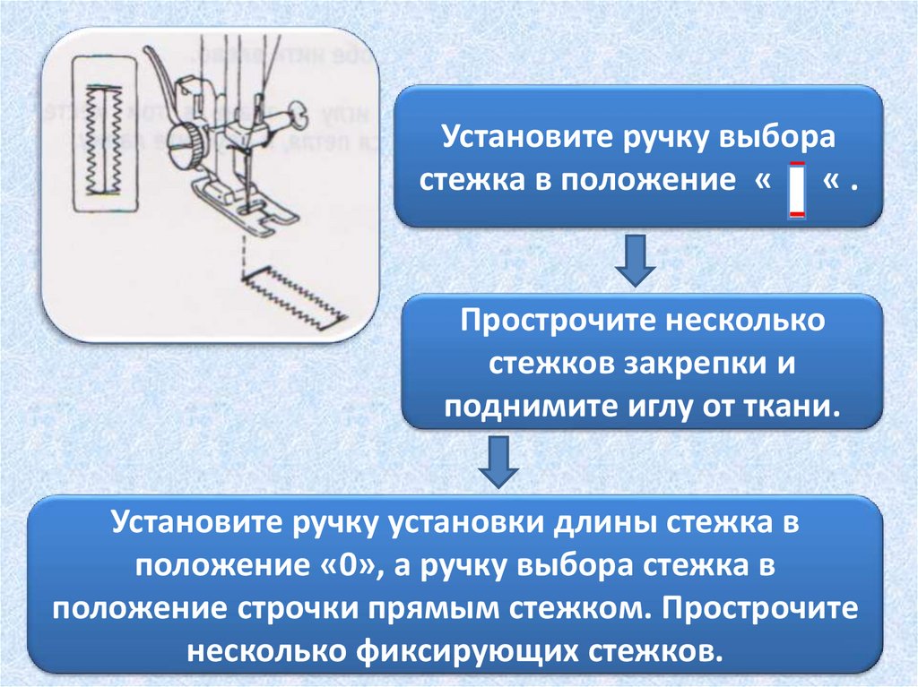 Установите ручку установки длины стежка в