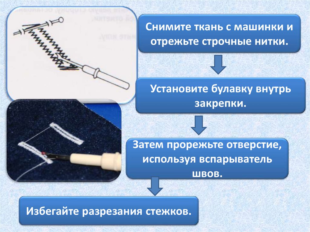 Избегайте разрезания стежков.