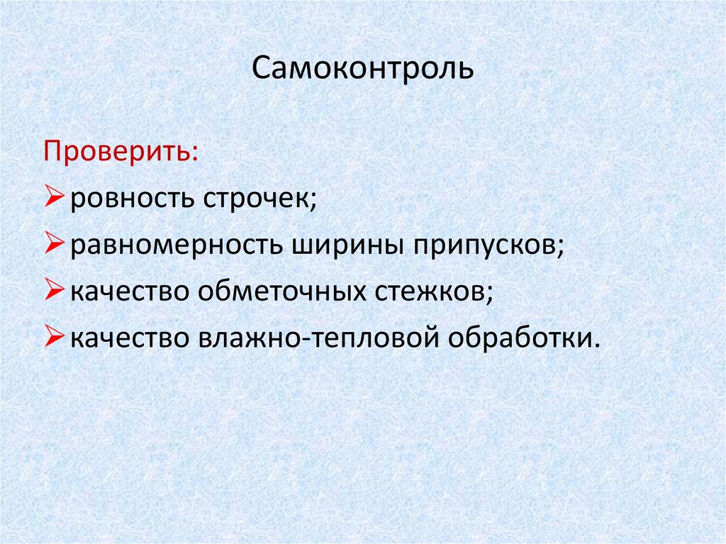 качество влажно-тепловой обработки.