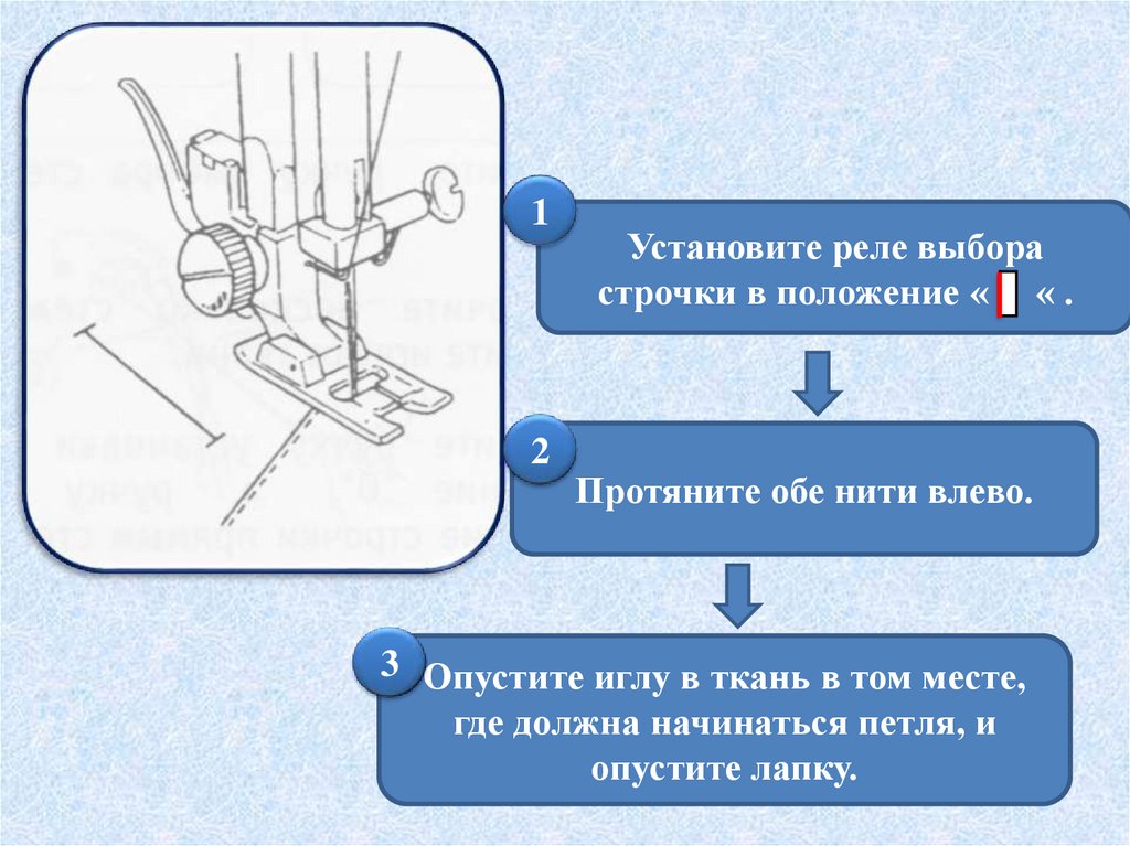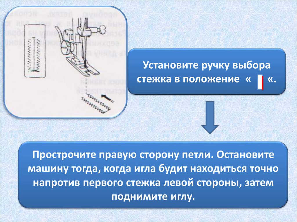 Установите ручку выборастежка в положение « «.