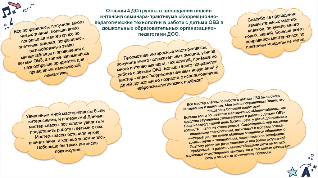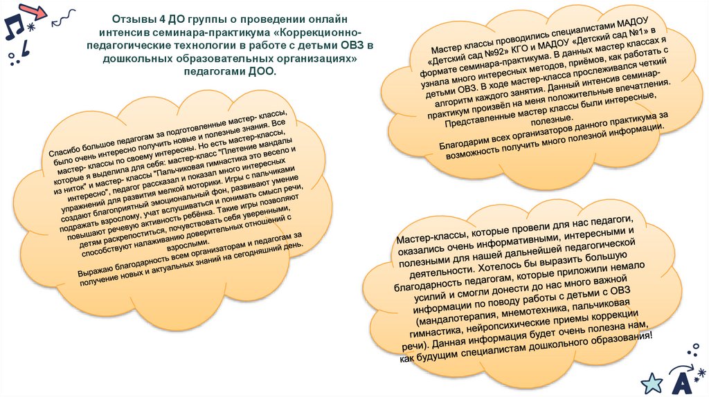 Отзывы 4 ДО группы о проведении онлайнинтенсив семинара-практикума «Коррекционнопедагогические технологии в работе с детьми ОВЗ в