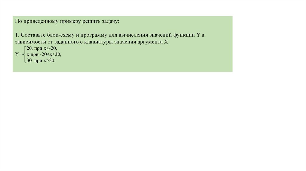 По приведенному примеру решить задачу:1. Составьте блок-схему и программу для вычисления значений функции Y в