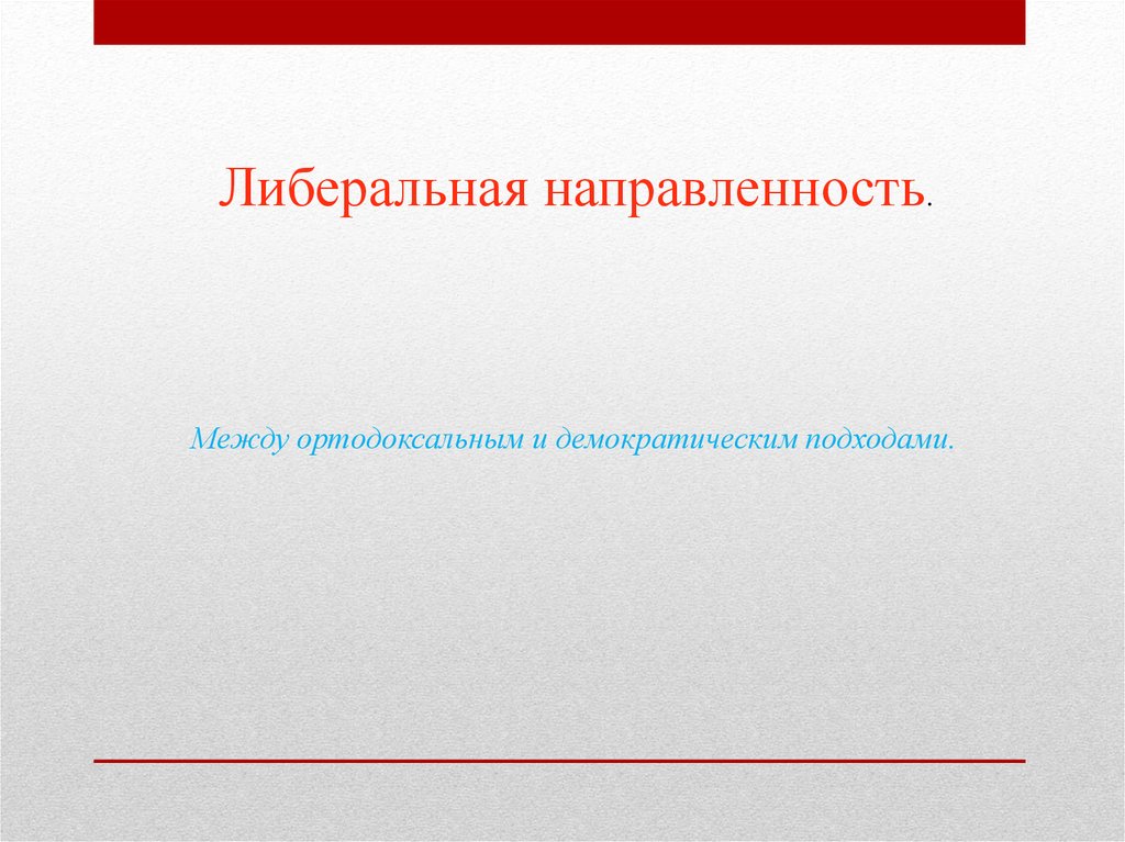 Либеральная направленность.Между ортодоксальным и демократическим подходами.