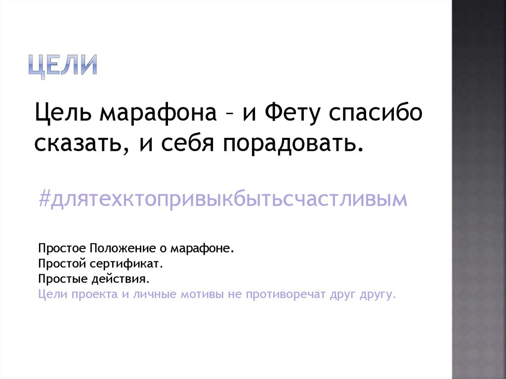Цель марафона – и Фету спасибосказать, и себя порадовать.