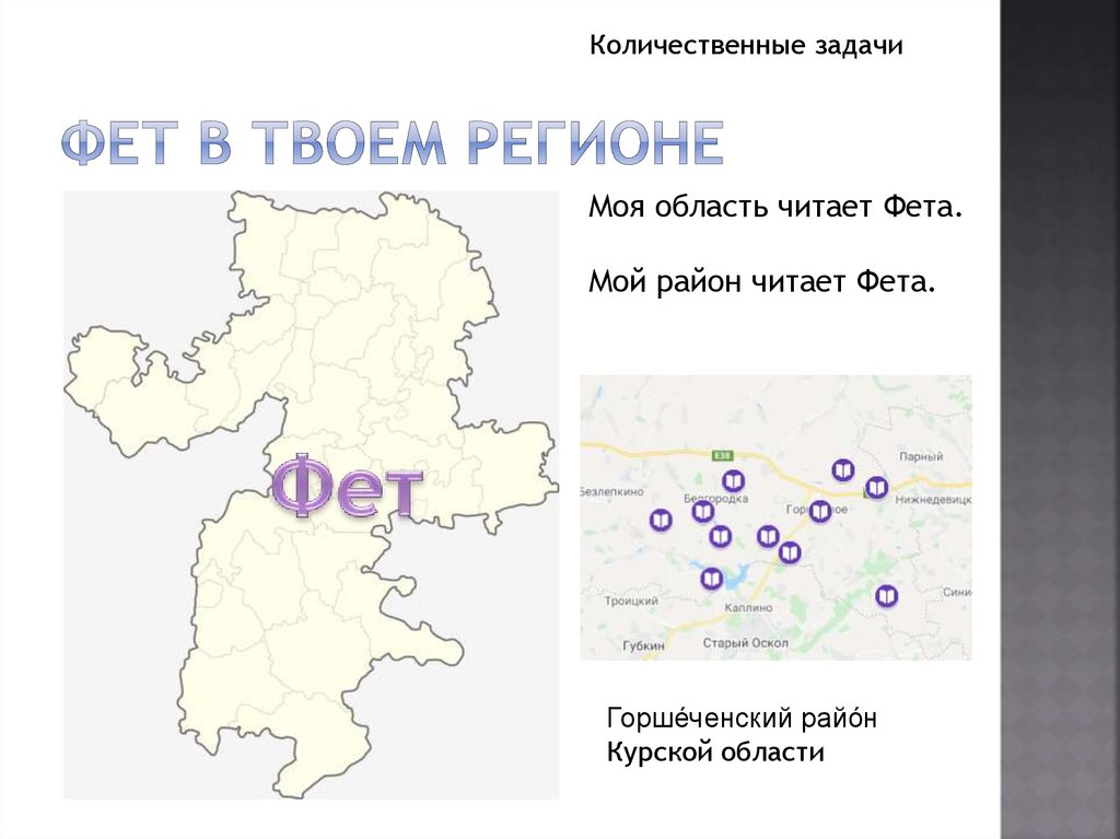Количественные задачиМоя область читает Фета.