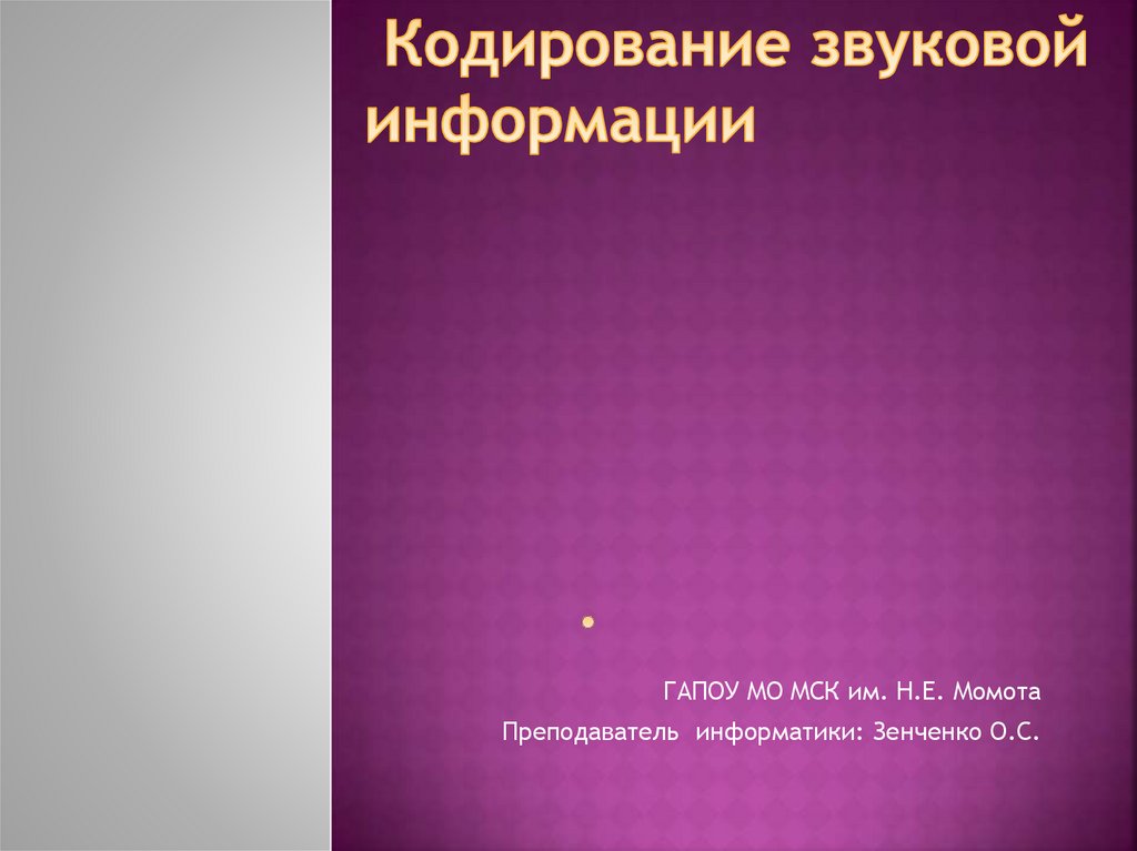ГАПОУ МО МСК им. Н.Е. МомотаПреподаватель информатики: Зенченко О.С.