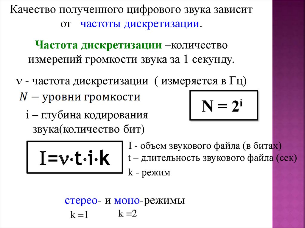 Качество полученного цифрового звука зависитот частоты дискретизации.