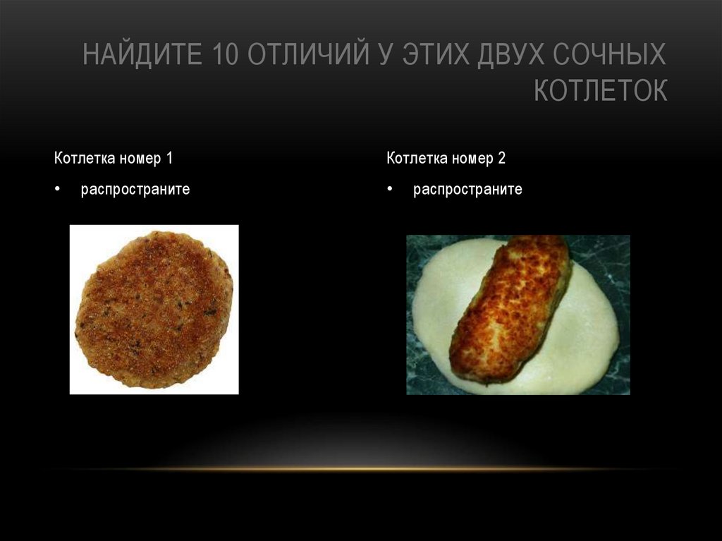 НАЙДИТЕ 10 ОТЛИЧИЙ У ЭТИХ ДВУХ СОЧНЫХКОТЛЕТОК