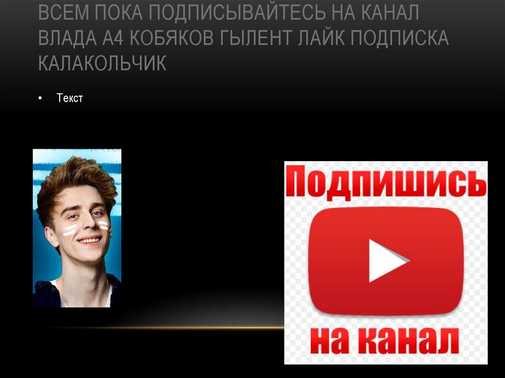 ВСЕМ ПОКА ПОДПИСЫВАЙТЕСЬ НА КАНАЛВЛАДА А4 КОБЯКОВ ГЫЛЕНТ ЛАЙК ПОДПИСКА